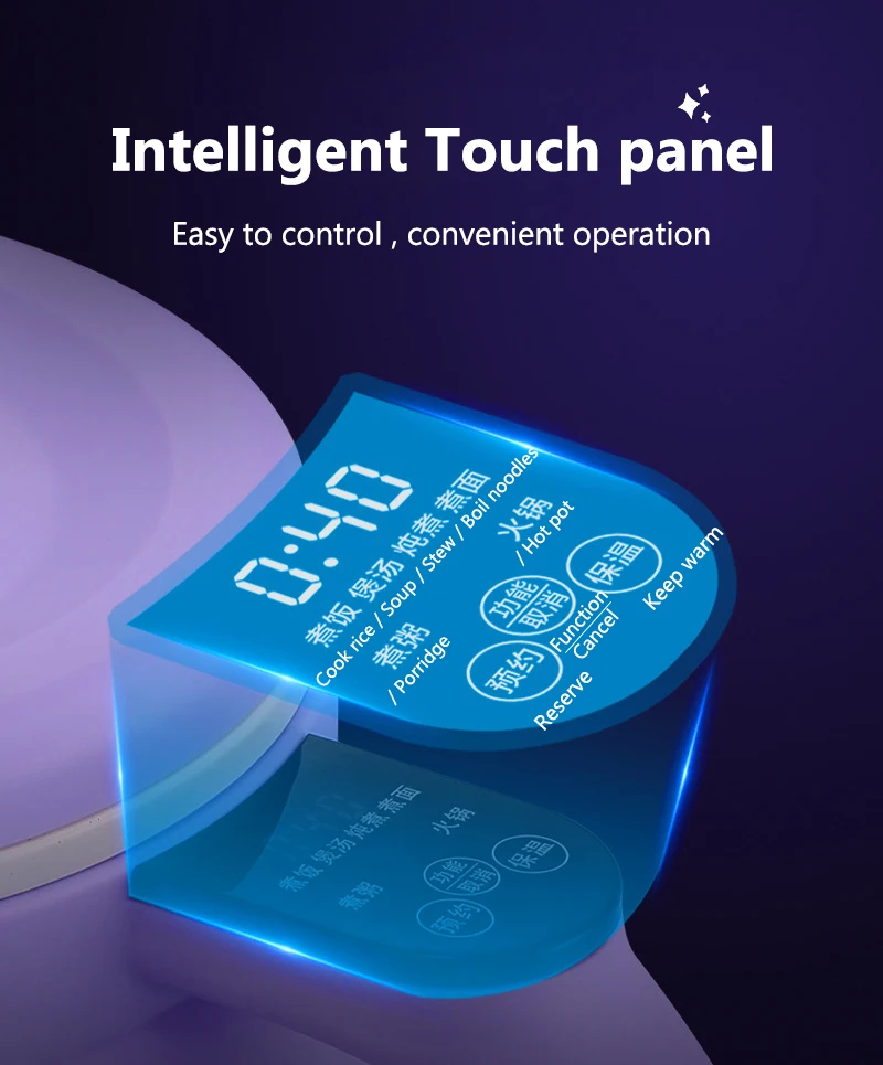 Function: Cook rice / Stew soup / Stew Porridge / Boil noodles / Hot pot / Keep warm/ Appointment